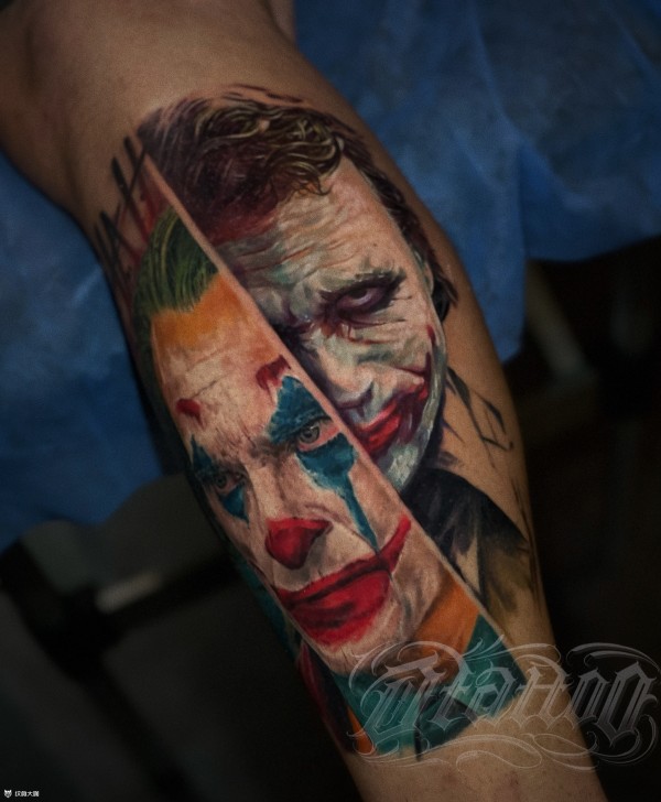 彩色写实小丑纹身.小腿小丑彩色写实.服了非常喜欢的两个经典角色