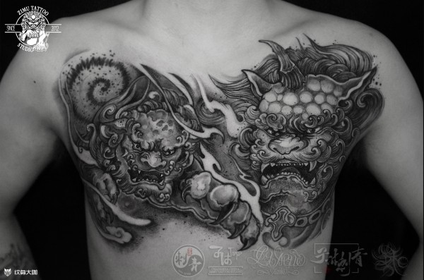 旧图修复 花胸唐狮与貔貅支持各种风格原创设计 !长沙子沐刺青!