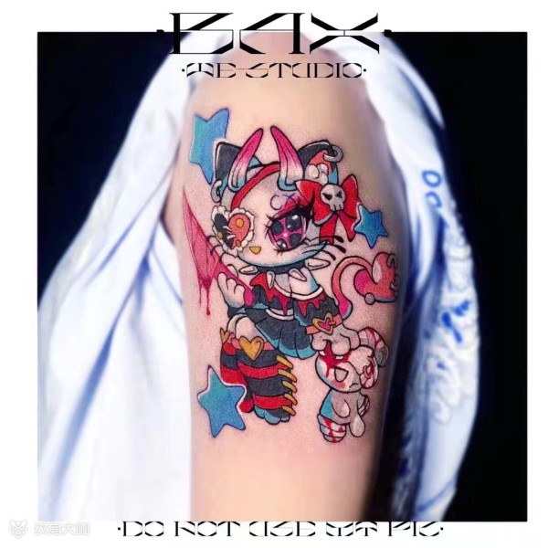 ▫️暗黑Kitty定制▫️客妹主色调要红黑和蓝色的星星▫️WE STUDIO成都纹身刺青原创工作室▫️设计制作来自本店纹身师:粑心