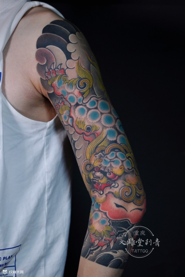 唐狮七分花臂纹身