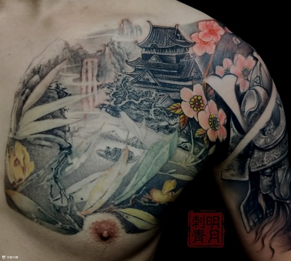 守护《守护》武士道精神守护家庭爱情。手臂是三年前在我家做的呢,意味守护他的家人,三年后莱接上胸田园,我做的图我就能无缝衔接呢