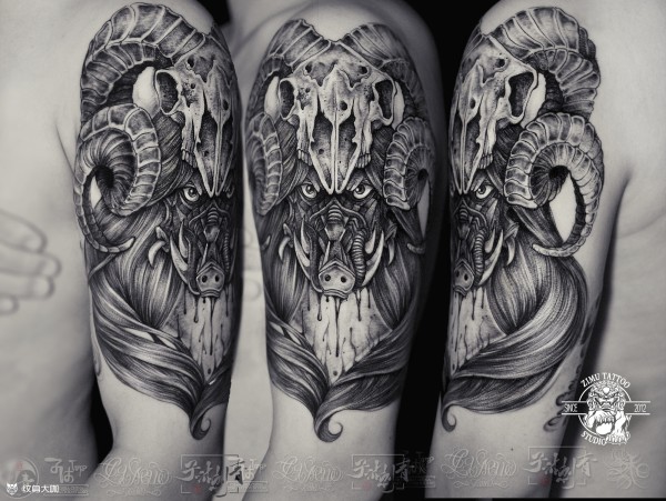 生肖贵人 羊与猪机械野猪生肖贵人 羊与猪 大臂外侧机械野猪 内侧书法与海浪
