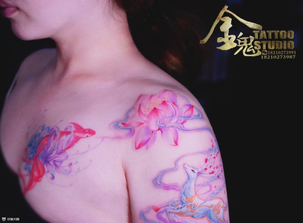 鹿纹身作为美的象征鹿与艺术有着不解之缘尤其是鹿天性中的善良、柔美、内敛的气质,更是值得人们的赞美莲花 出淤泥而不染,濯清莲而不妖
