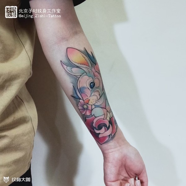 女生猫咪兔子个性手臂纹身_手臂纹身图案大全_纹身图吧