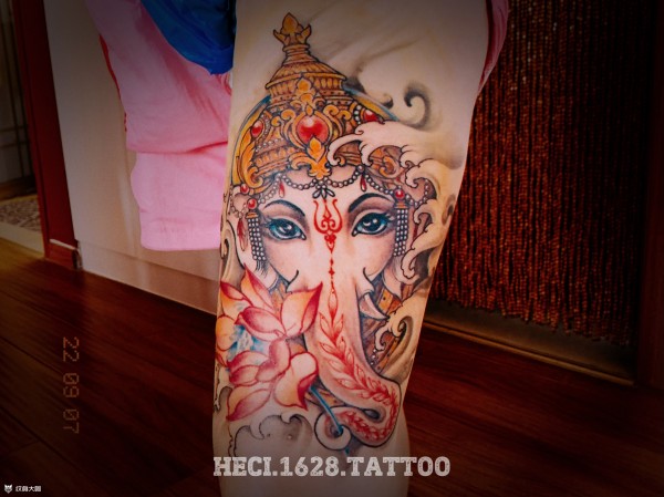 小腿上一款大象纹身图案_腿部纹身图案大全_纹身图吧
