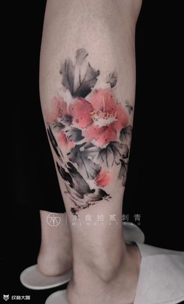 传统鲤鱼花小腿纹身_腿部纹身图案大全_纹身图吧