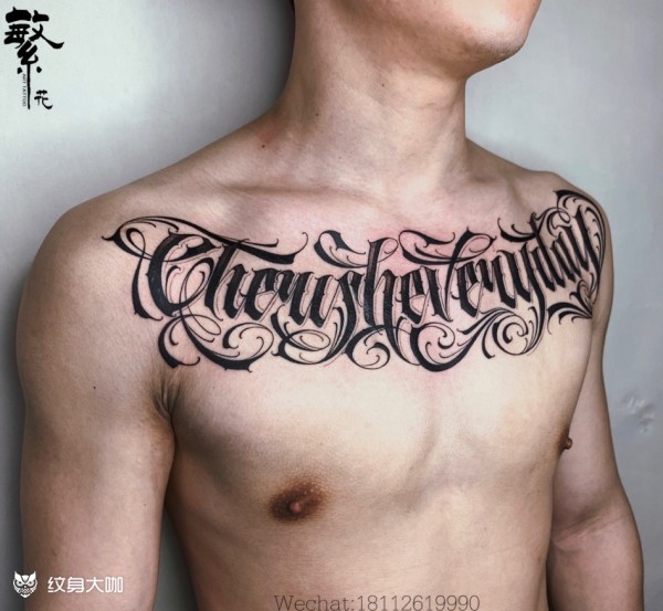 纹身图案胸部男 简洁大方的男生胸部纹身图案