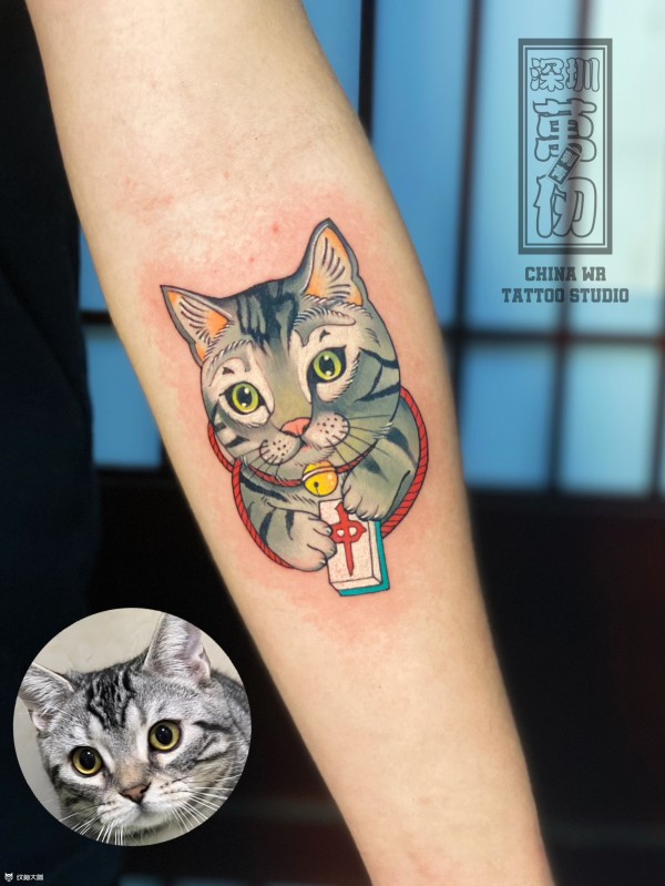 女生猫咪兔子个性手臂纹身_手臂纹身图案大全_纹身图吧