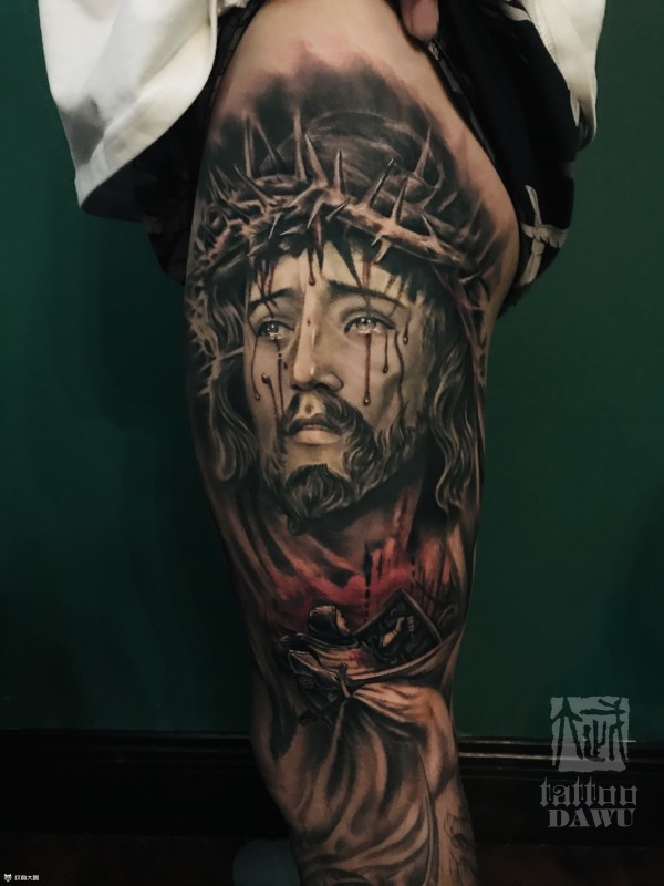 耶稣接花腿作业 耶稣面部为恢复5个月的效果。小腿不是我们作品 承载者这次从哈尔滨专程来找我们,连做两天。还差内侧下次再续。by-大武。原相机无美颜无滤镜随手一拍。