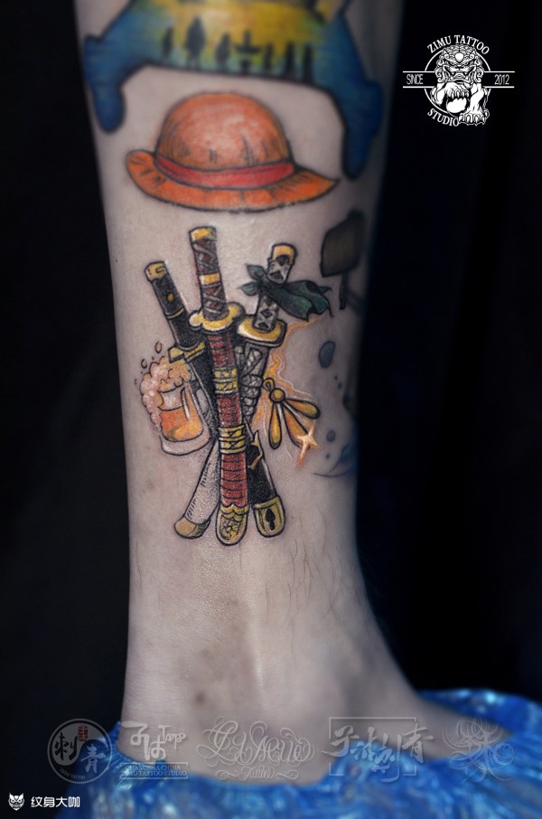海贼王 索隆三把佩刀燃烧的梅丽号和他的船员们索隆的三把配刀:和道一文字 雪走 三代鬼彻索隆人物的一些经典配饰图:耳环 啤酒 头巾