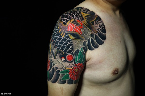 老传统鲤鱼▪️老传统风格作品▪️锦鲤/菊花/水浪经典搭配用来遮盖[旺柴]