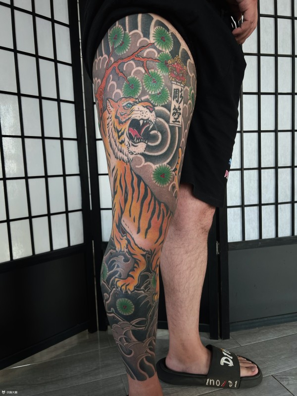 虎年限定花腿根据承载者的要求设计的老虎花腿 原创设计 单针雾面+排针雾面结合