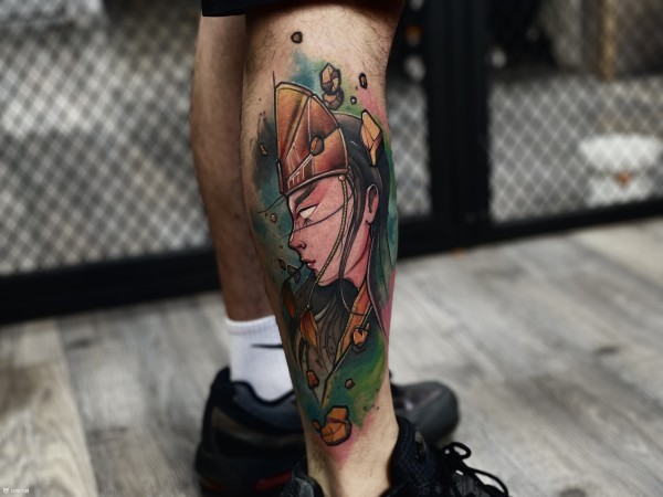 花腿纹身--一组大黑腿纹身图案作品欣赏