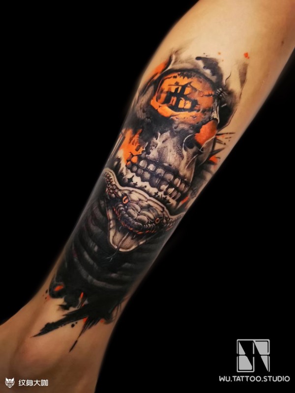 花腿纹身--一组大黑腿纹身图案作品欣赏