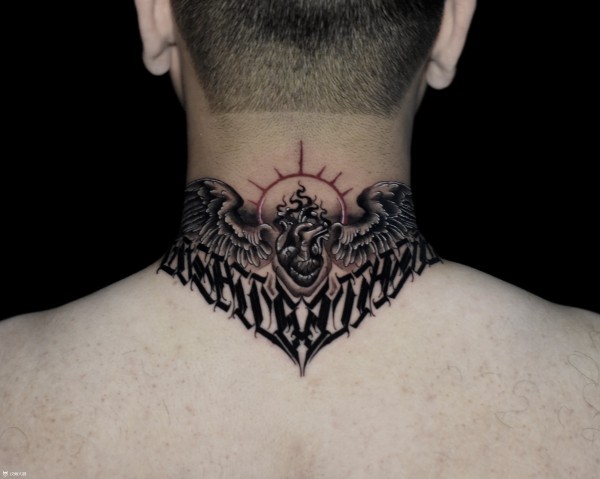 后脖翅膀花体字心脏
