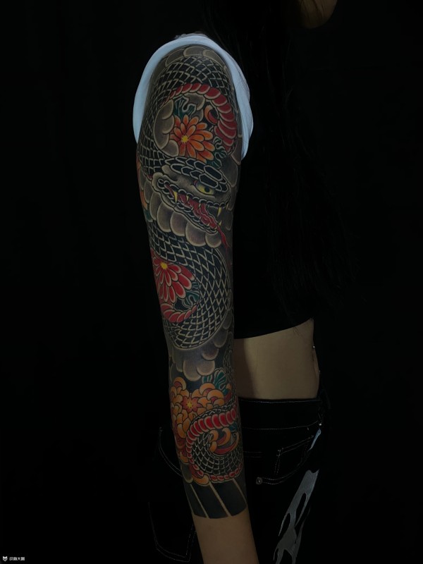 蛇盘菊花结束,今天整体黑灰又调整了一下,果然女的都比男的扛扎啊,从开始割线到最后结束没说一声疼,每次都是把我累到说下次吧才结束