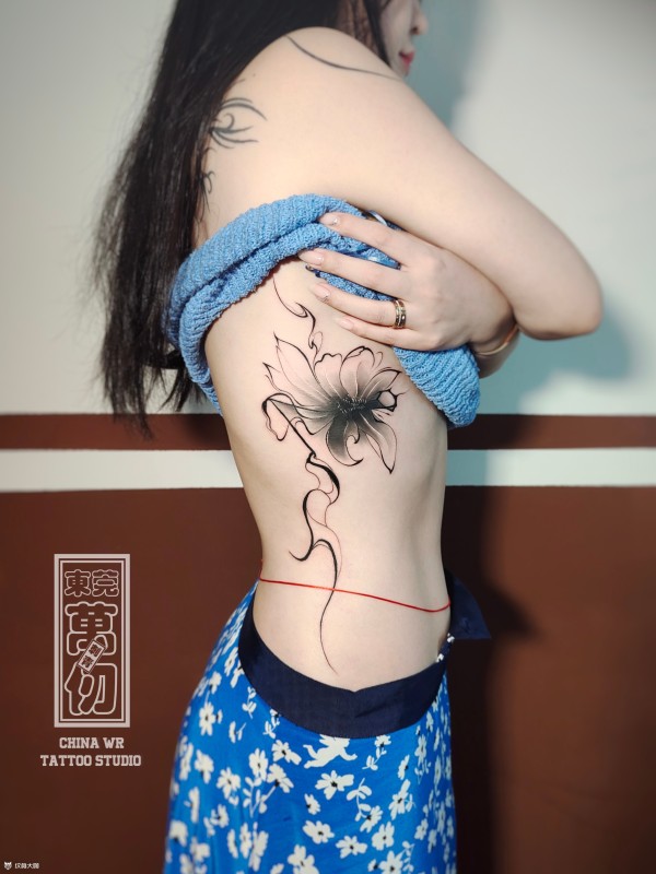 女性腰部莲花花纹刺青_腰部纹身图案大全_纹身图吧