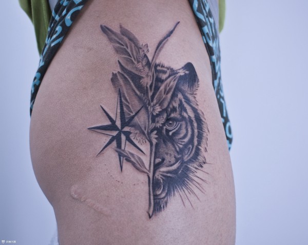 侧腰霸气老虎头纹身_腰部纹身图案大全_纹身图吧