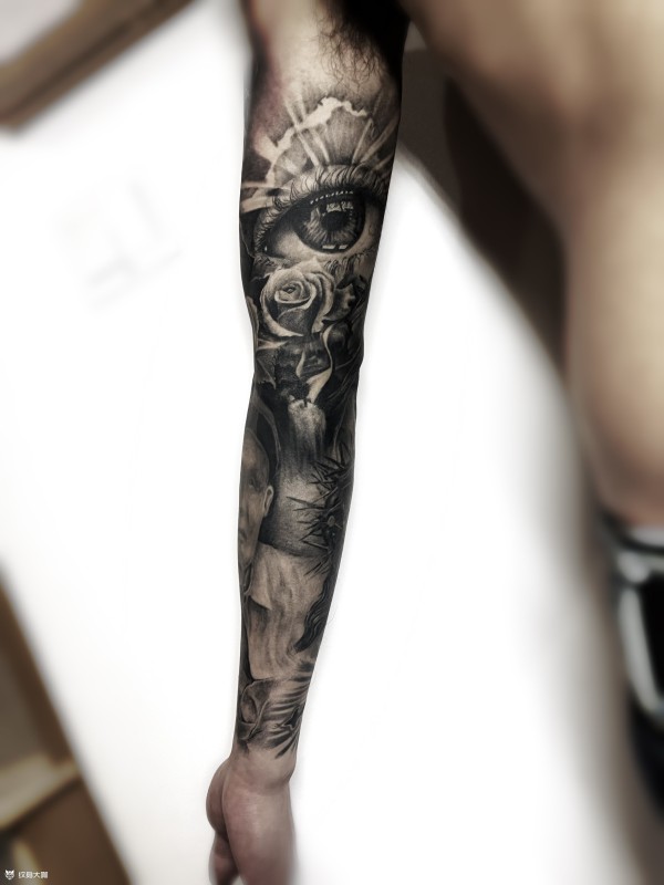25款男性黑色手臂线条纹身点刺技巧半甲纹身图案