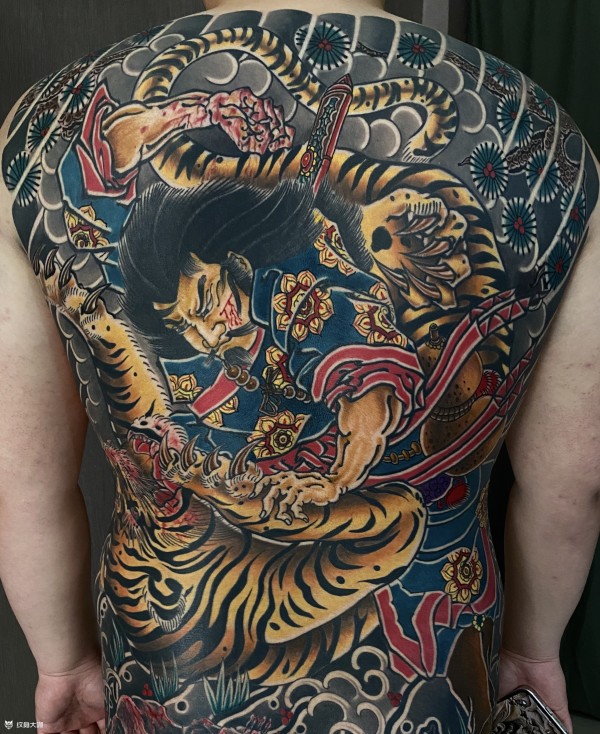 日式满背武松打虎结束 重新发一下 只能发到腰部了 一小时一张