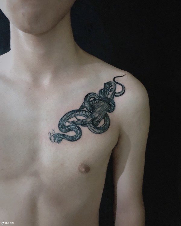 纹身图案胸部男 简洁大方的男生胸部纹身图案