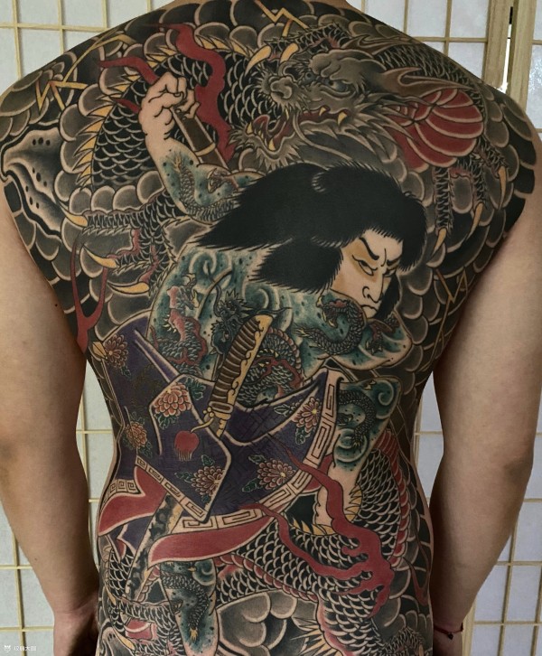 日式满背九纹龙史进结束 满背到臀 耗时70多个小时 一小时一张