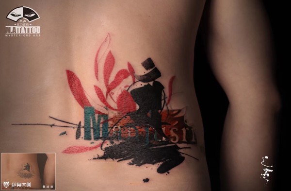 分享一款腰部时尚性感的蝶恋花纹身图案_腰部纹身图案大全_纹身图吧