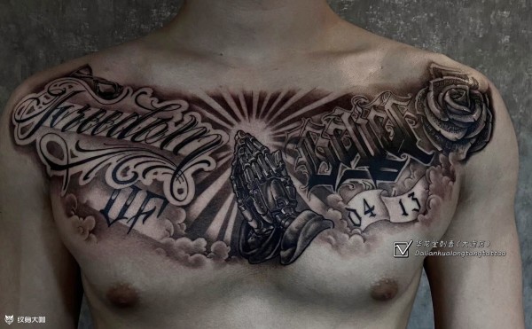 纹身图案胸部男 简洁大方的男生胸部纹身图案