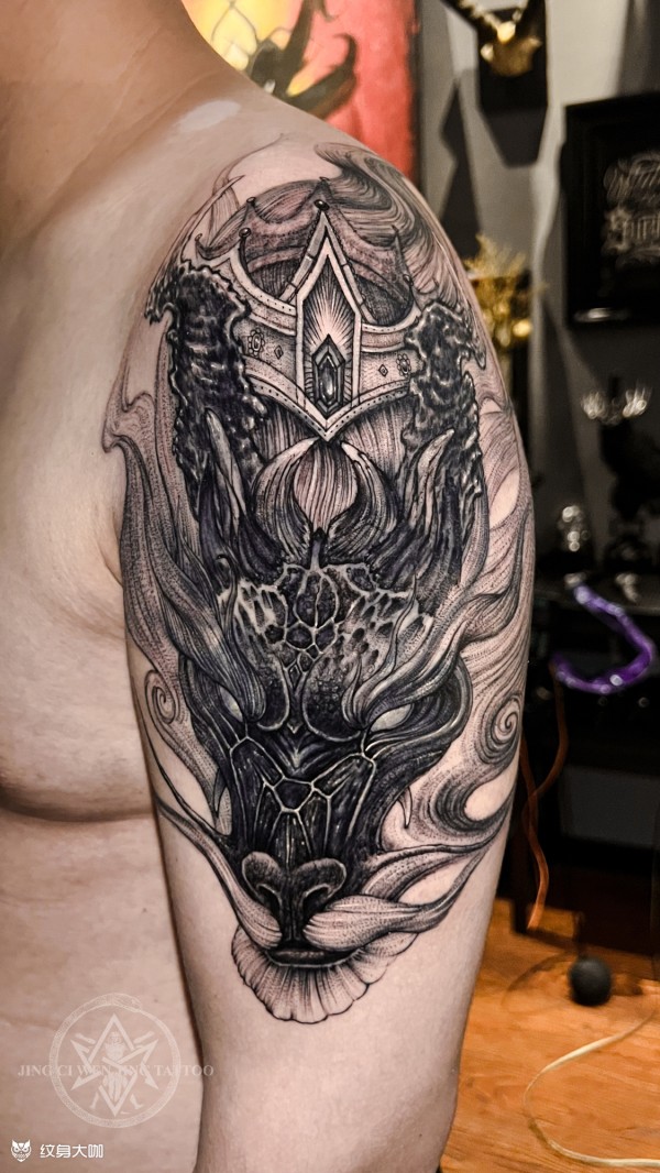 日式手彫刺青作品—半甲龙很感谢客户认可手彫刺青,手彫是日本纹身的手工雕刻技术,时间可以追溯到日本17世纪的江户时代。19世纪,手彫技术被日本黑帮挪用,被用作入会仪式,象征着从此就是江湖中人。在日式传统