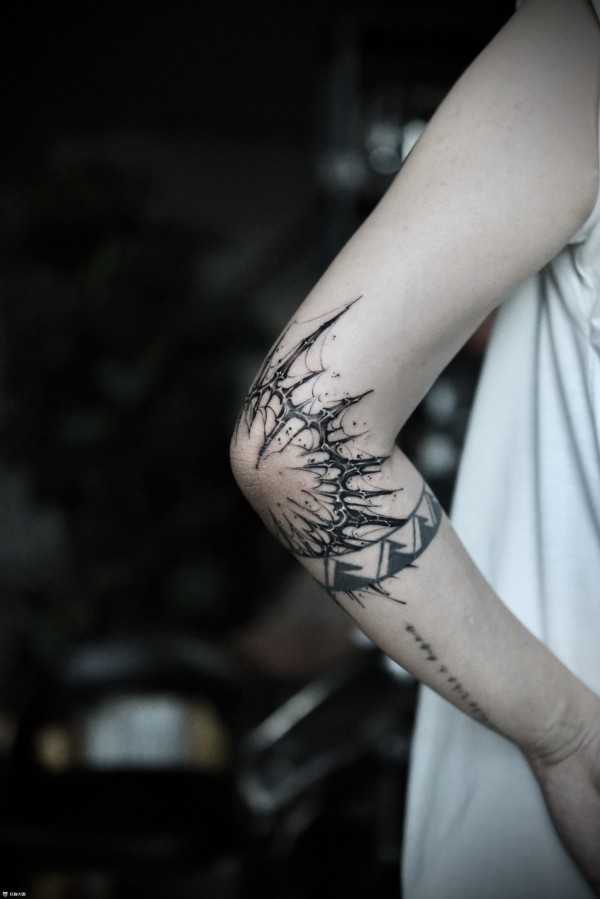 25款男性黑色手臂线条纹身点刺技巧半甲纹身图案