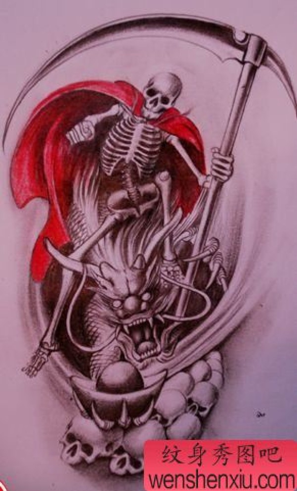 男士纹身图案之帅气霸气的招财死神龙骷髅纹身图案(精品)