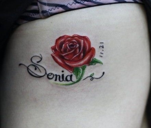 腿部彩色玫瑰纹身图案纹身图片