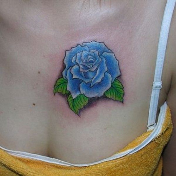 女生胸部蓝色玫瑰纹身图