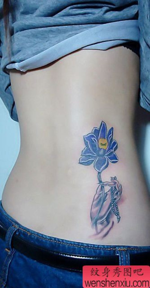 美女纹身图案之美女侧腰佛手莲花纹身图案(精品)