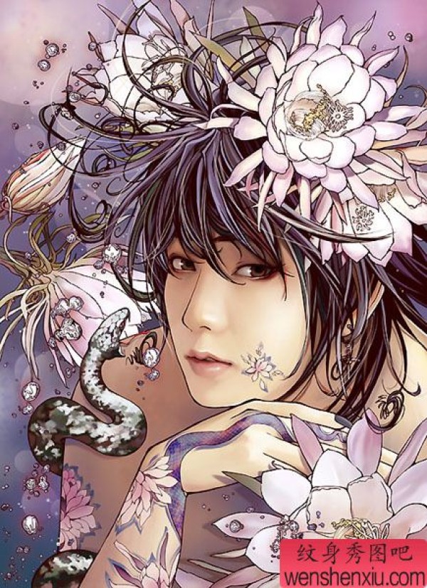 能面万媚纹身手稿_52张日式能剧面具纹身手稿图案素材欣赏