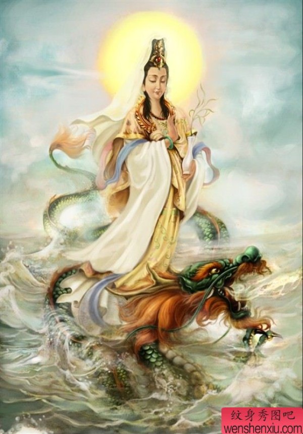 观音骑龙纹身图案