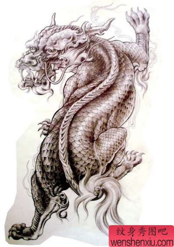 龙纹身手稿_一组老传统黑灰龙手稿纹身图案