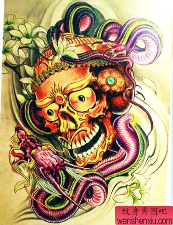 能面万媚纹身手稿_52张日式能剧面具纹身手稿图案素材欣赏