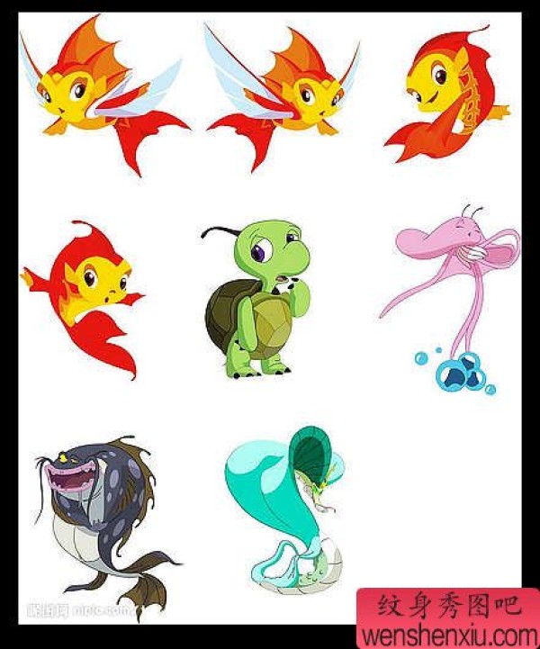 可爱的卡通金鱼纹身图案