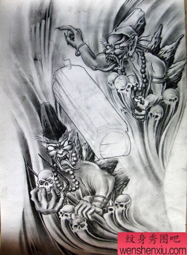 满背无常鬼纹身图案纹身图片