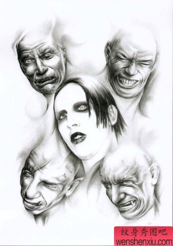 能面万媚纹身手稿_52张日式能剧面具纹身手稿图案素材欣赏
