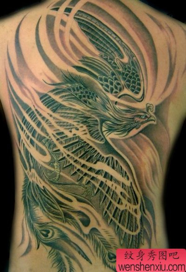 满背凤凰纹身作品图片