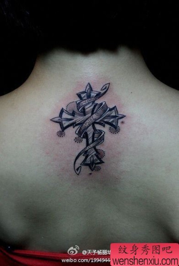 颈部十字架纹身图案纹身图片