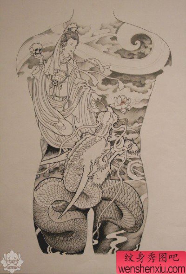 纹身图案之满背观音骑龙纹身图案(经典帅气)