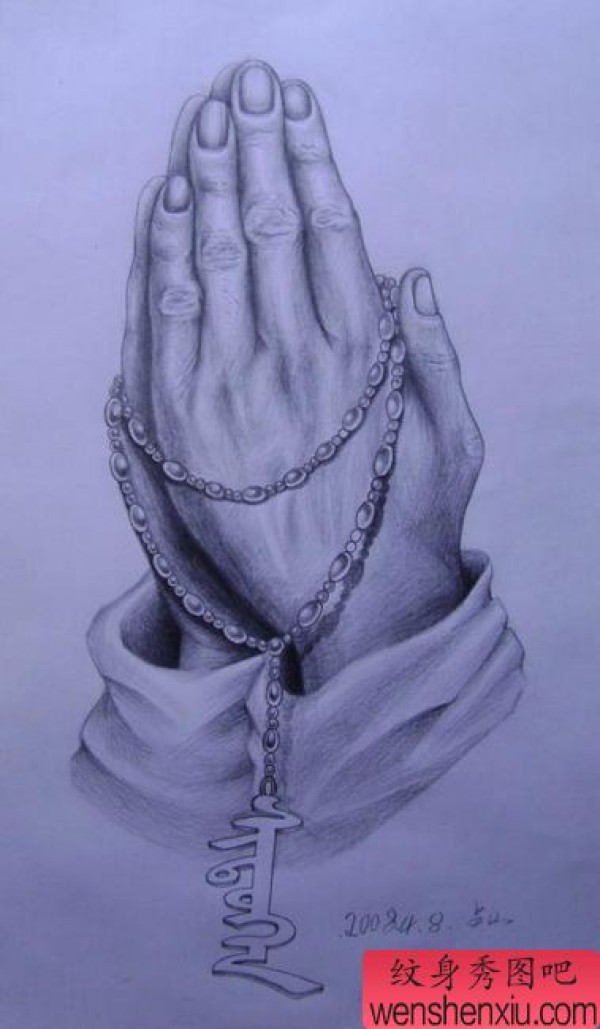 佛手十字架纹身图案