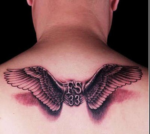 后背翅膀字母纹身图案