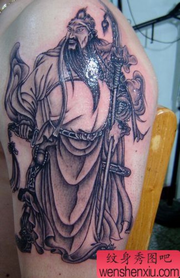 一张手臂关公纹身图案