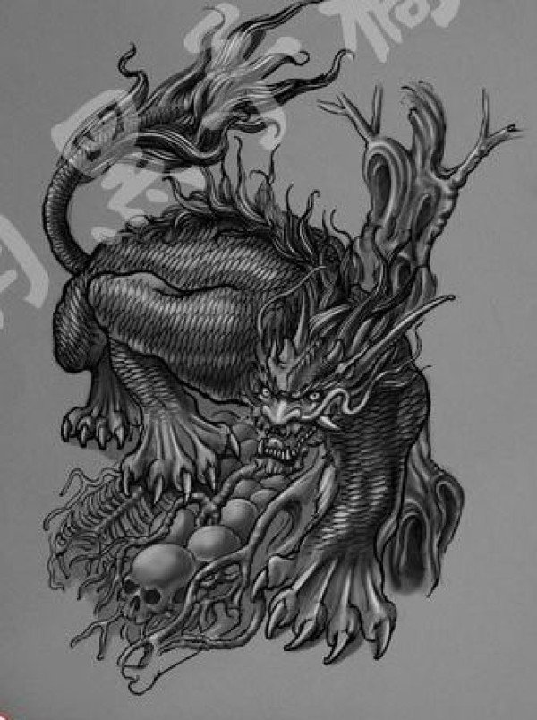 龙纹身手稿_一组老传统黑灰龙手稿纹身图案