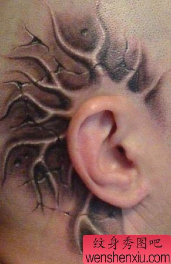 头部地裂浮雕纹身图案