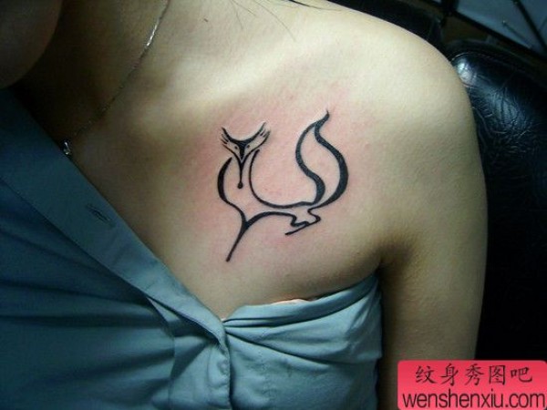 胸部图腾狐狸纹身图案